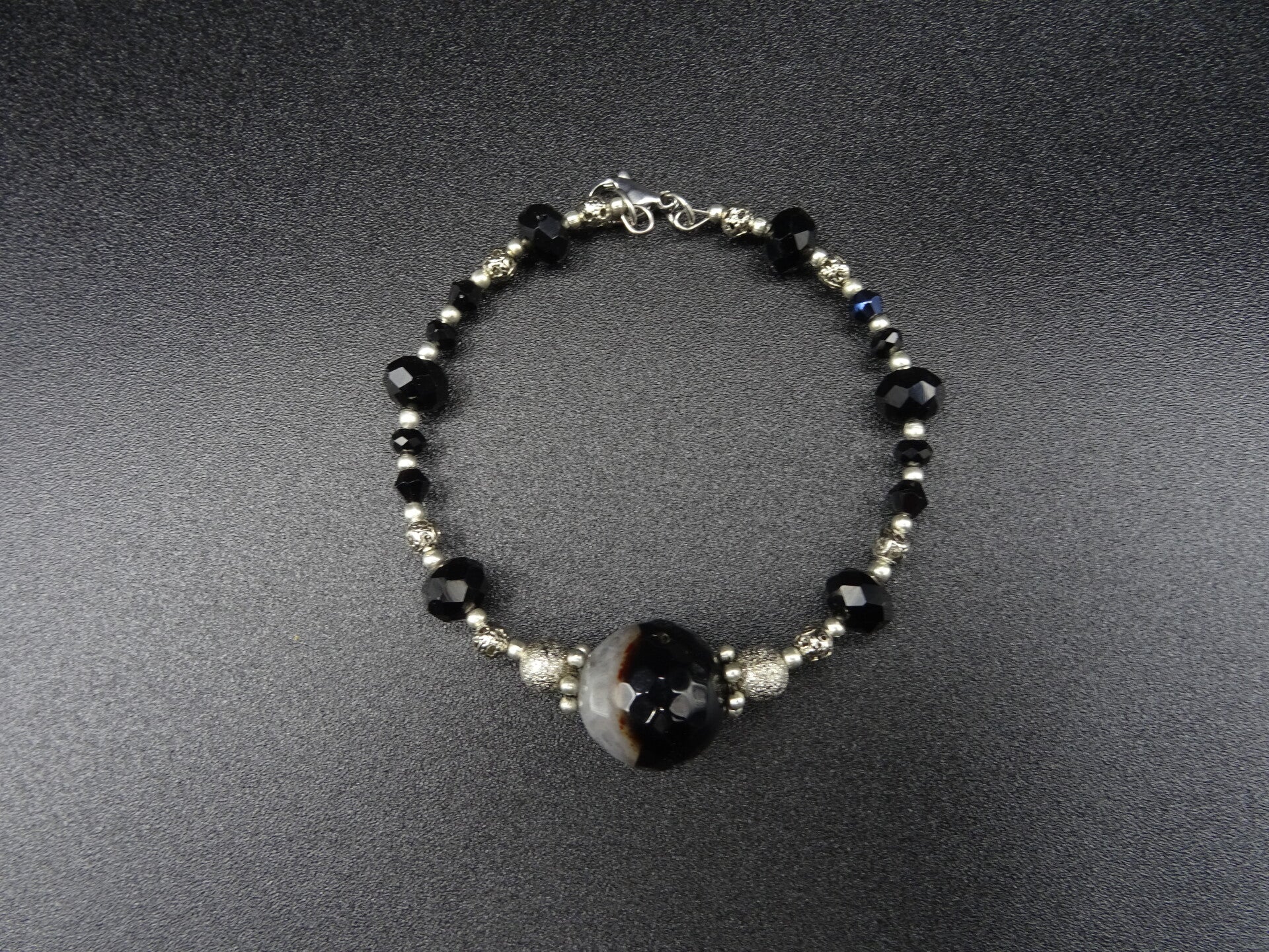 Bracciale realizzato con Agata striata Nera, cristalli e acciaio