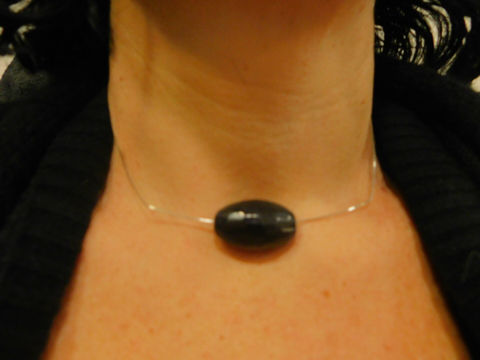 La Collana è stata ideata affinchè la Pietra scenda esattamente nell'incavo del collo, comunque la si può regolare a proprio piacimento