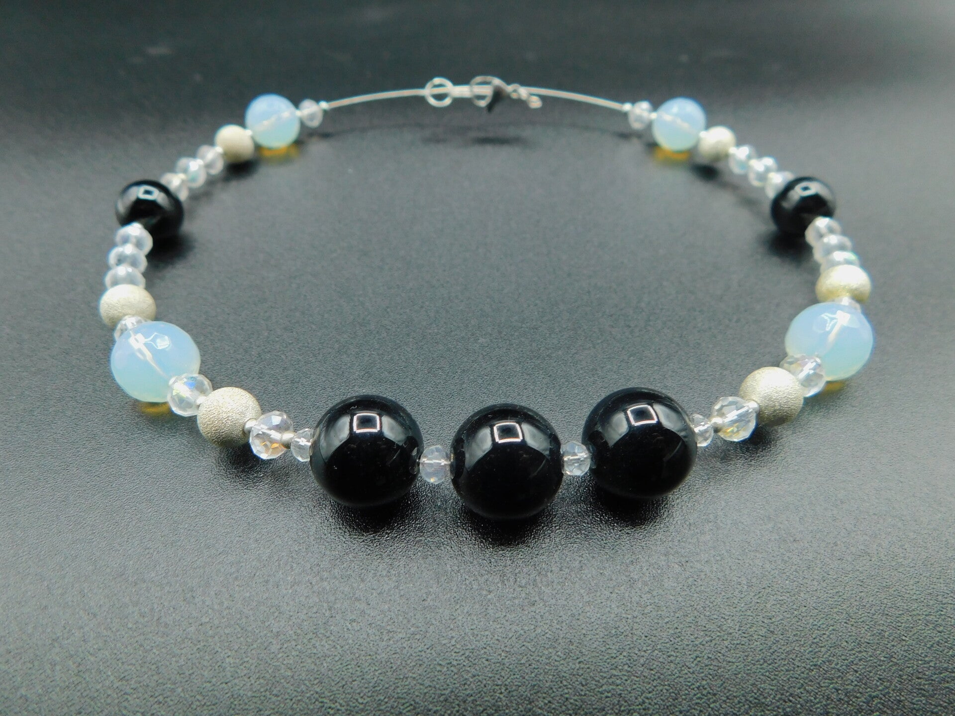 Collana realizzata con Onice Nero, Pietra di Luna, cristalli e acciaio